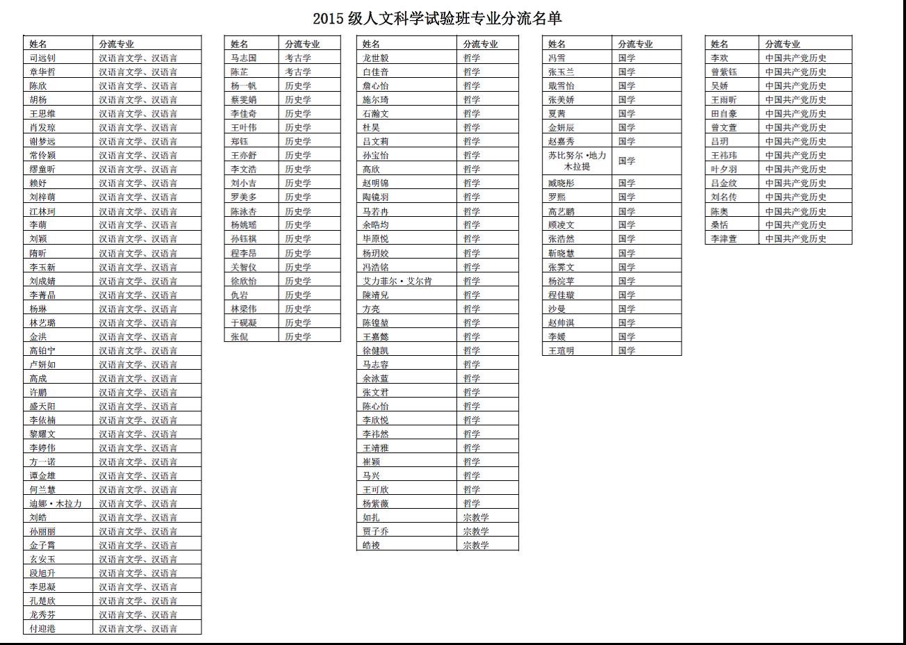 依据公司相关规定与要求,教务处联合文公司、历史公司、哲公司、yl88858永利集团和马克思主义公司等五个公司已完成2015级人文科学试验班专业分流工作,现将转业分流名单予以公示。