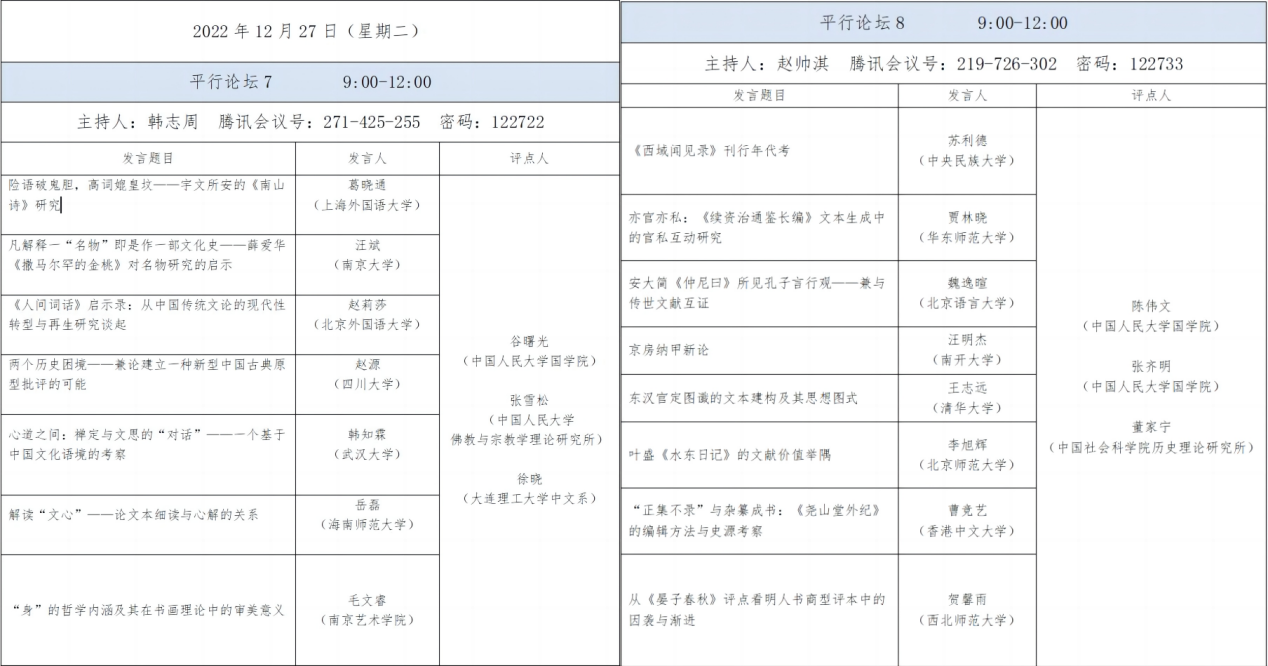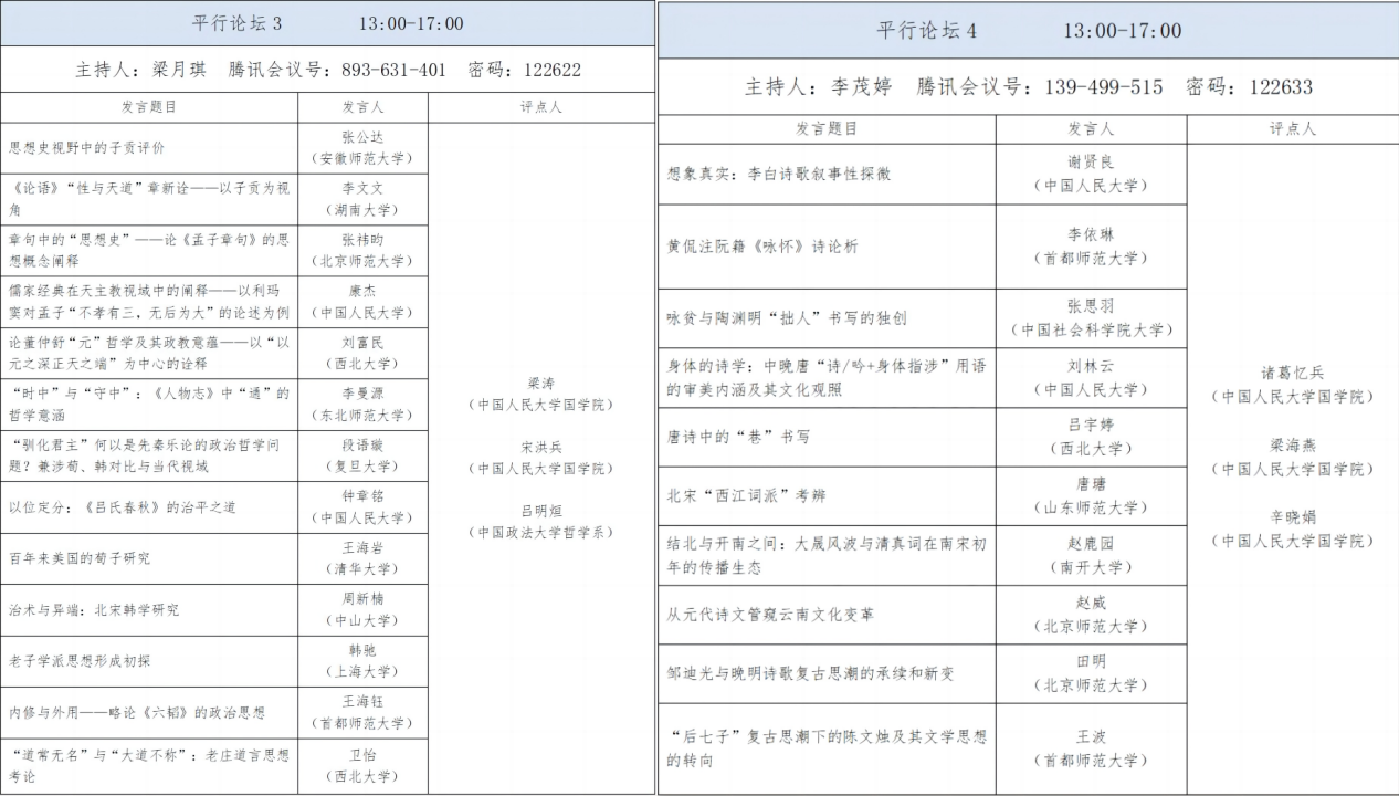 为了使所有参会学者充分交流,有所收获,本次论坛共分为12场平行论坛,每场论坛的参与人数均为10人左右,论坛主持人均由本次参会的青年学者担任。主办方为每场论坛邀请到了数位老师进行点评互动。点评老师不仅有来自yl88858永利集团、哲公司的老师,论坛更得到了来自北京大学、清华大学、南开大学、中央民族大学、湖南大学、中国政法大学、上海大学、大连理工大学、中国社会科公司、中国藏学研究中心等高校和研究机构的学者的大力支持。点评老师们提前阅看论文,在论坛中给出了细致深入的建议,为文章的修改完善提供了具体的方向。老师们也与青年学者们分享了自身治学的经验,勉励大家沉下心来思考,在日常的研究中进一步提升文献阅读能力,增强学术写作训练,努力打磨出精品,同时也希望青年学者们能够在自己的研究中积极探索中国古典学的具体问题与方法。点评结束后,参会学者、点评嘉宾以及线上旁听观众围绕个别问题展开了热烈讨论,每一场的点评互动环节时间均为60分钟左右,虽然也有意犹未尽的时刻,但基本实现了让所有参会者充分交流互动的初衷。